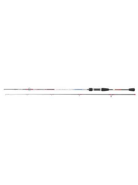 Incorpora anillas Fuji y un mango ergonómico en espuma EVA negra, que garantiza un agarre firme y cómodo, incluso con las manos mojadas o en condiciones adversas, asegurando control y confort durante largas sesiones. Una opción ideal para pescadores que valoran la adaptabilidad y el alto rendimiento, tanto en escenarios costeros como en agua dulce.
