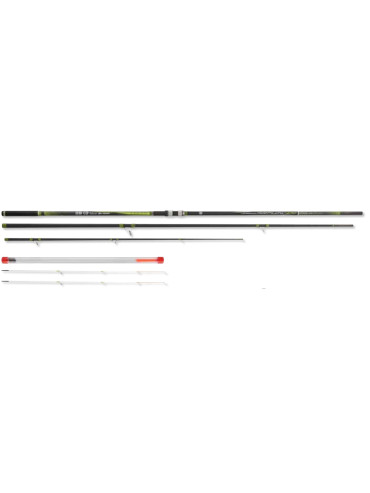 Esta caña de tres tramos está fabricada en Carbón HM con 2 punteras intercambiable que nos permitirán tener una extraordinaria sensibilidad a la picada.